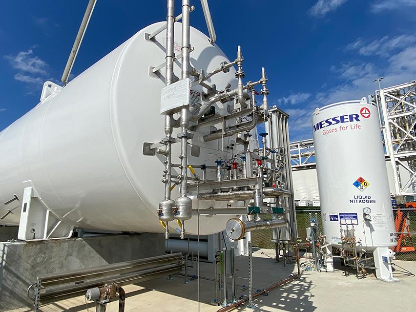 At a car manufacturing plant in Greer, South Carolina, Messer installed a redundant hydrogen supply system with high-capacity pumps and a 90,000-liter liquefied hydrogen tank. Messer has already been developing, installing, operating and maintaining the hydrogen supply and refueling infrastructure for the manufacturing plant since 2010. It supplies more than 700 forklifts and material handling vehicles today – one of the largest fleets of this type in the USA.