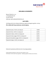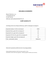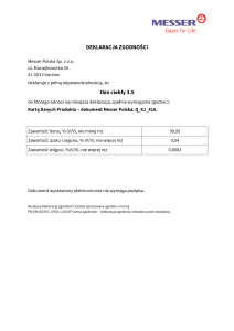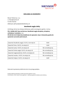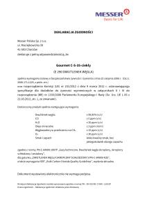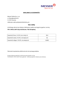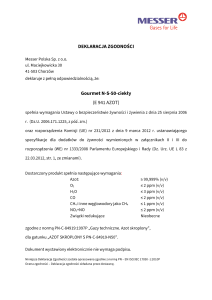 Z poniższej listy można pobrać odpowiednią deklarację zgodności dotyczącą dostarczonego gazu.