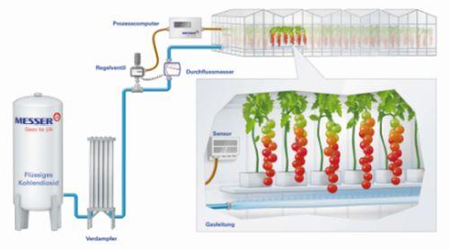 Durch eine CO2-Anreicherung der Atmosphäre in Gewächshäusern kann das Pflanzenwachstum zum Teil erheblich gesteigert werden. Einer optimierte Überwachung und Steuerung der Kohlendioxidkonzentration führt zu Ertragssteigerungen von bis zu 35 %.