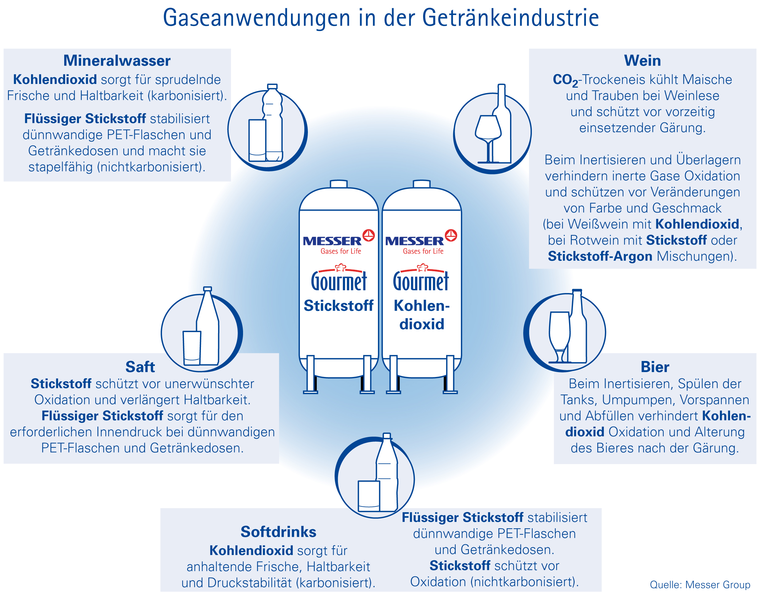 Gase für die Getränkeindustrie - Karbonisieren - Inertisieren - Stabilisierung - Maischekühlung - Extraktion