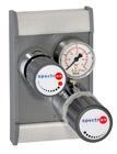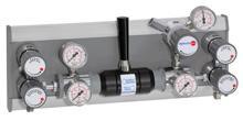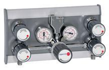 Die Druckgasbehälter werden an die Entspannungsstationen angeschlossen. Über einen Druckregler mit zwei Manometern kann der Druck der zentralen Gasversorgung eingestellt werden und der Flaschendruck überwacht werden. Zudem ist die Entspannungsstation mit einem Absperr- und Spülventil ausgerüstet.