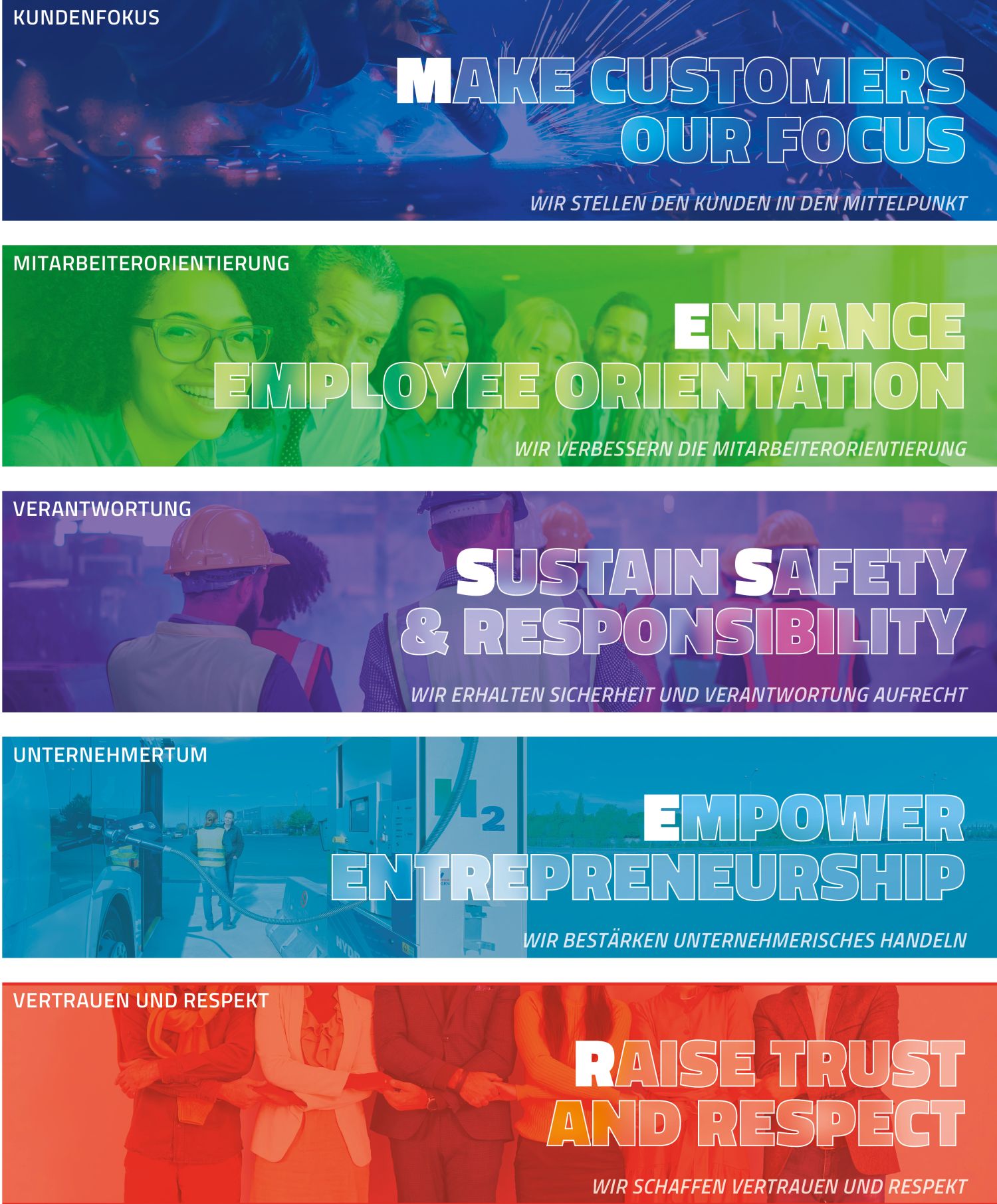 • Vertrauen und Respekt: Wir schaffen Vertrauen und Respekt.